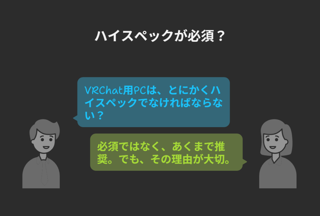 誤解①「VRChat用PCは、とにかくハイスパでなければならない」