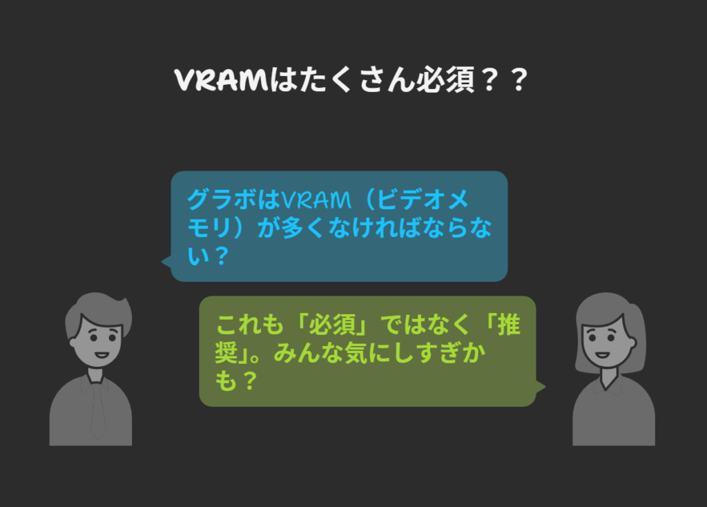 2. 誤解②「グラボはVRAM(ビデオメモリ)が多くなければならない」