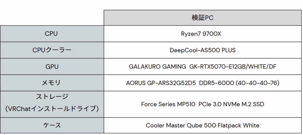 VRAMが12GBであることから、VRChatでどこまで戦えるかが焦点となりますが、上記のGPUとの比較も含めてみていきます。