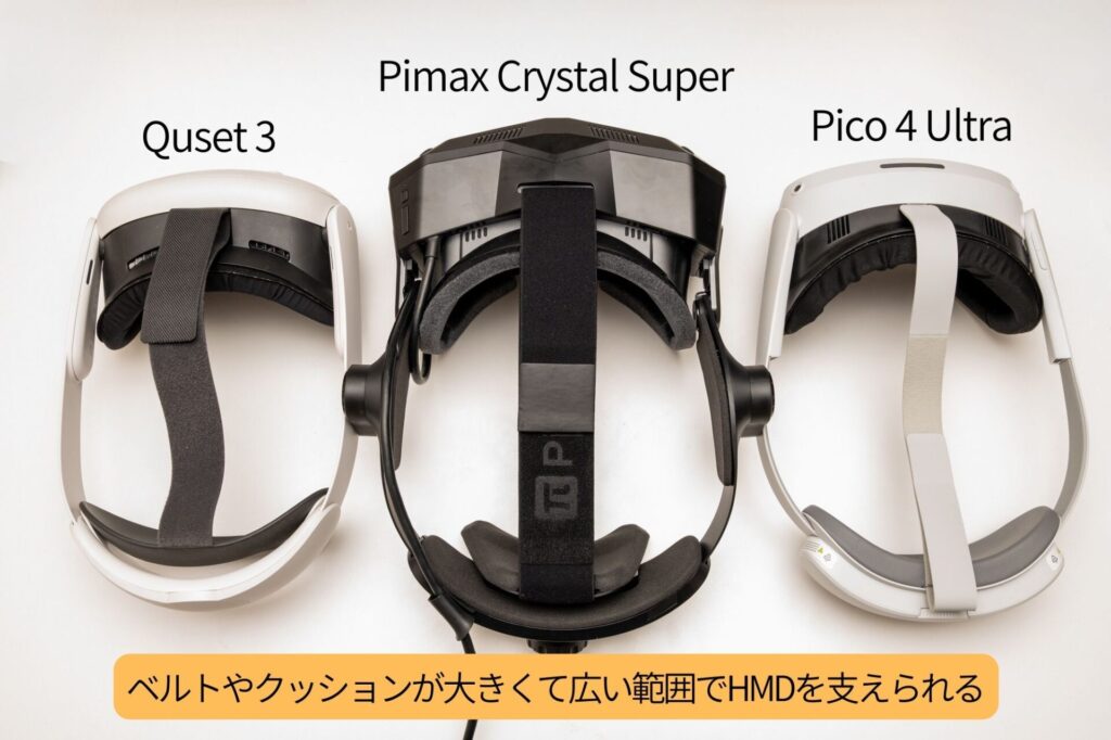 HMD自体の重量が800g を超えており、他社HMDと比べるとかなり重たいHMDではありますが、意外と快適です。前後の重量バランスがよいことや上部のベルトが太いうえフェイスクッションも広く、満遍なく重さを分散できる構造になっていることが恐らく快適性に寄与しているのでしょう。