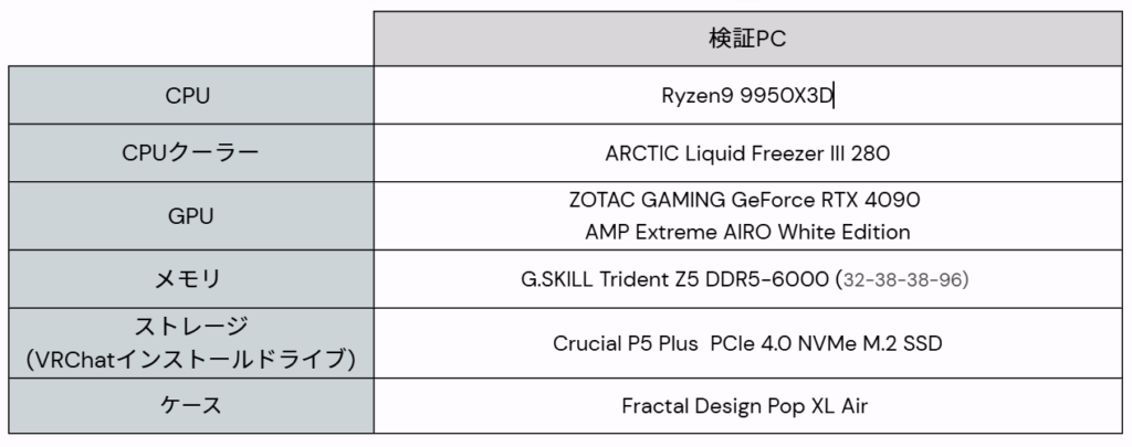 今回の検証は筆者のメインPC環境で比較を行った。RTX4090 は1世代前のハイエンドGPUではあるが、後述のPiamax Crystal Super での利用ではかなり力不足感があった。Pimax Crystal Super の真価を発揮したい場合は RTX5090 の利用が前提となるでしょう。RTX5090はRTX4090と比べたラスタライズ性能は1.3倍程度であり単純な性能だけ見ると性能差は限定的に見える。しかし、RTX5090 はメモリの帯域幅が非常に広く、今回のテストケースのような非常に高解像な設定でVRHMDを動かす場合に高いfpsを発揮する。Pimax Crystal Super の購入を検討している人は是非ともRTX5090 の購入も併せて検討してほしい。